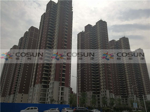 超前涂料 CCTV黃金展位合作伙伴鄭州中建七局森林上郡工地施工面積16萬平方,為了追求高端社區(qū)的需要,能從視覺上彰顯整個(gè)建筑的高雅與莊重之美,選擇了天然真石漆做為外墻專用漆。