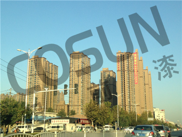 五、 超前漆生產(chǎn)出來(lái)的外墻真石漆是采用天然巖石碎粒特制而成、不易裉色、能保持長(zhǎng)久的外觀效果,另外還能適應(yīng)各種氣候,能夠保證漆膜不泛白不泛黃,還具有效阻隔水分進(jìn)入墻體,防止堿性物質(zhì)的析出;完工后的效果莊嚴(yán)肅穆,充分能展現(xiàn)出來(lái)天然石材的豐富質(zhì)感;